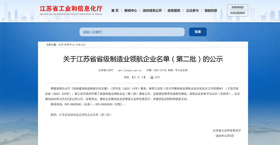 克日,,,,,,,,江苏省工信厅宣布了第二批省级制造业领航企业名单,,,,,,,,全省仅 55 家制造业企业入选。。。。。918博天娱乐官网(简称 “918博天娱乐官网”)依附自身先进的制造水平、一连的立异能力和显著的行业刊行动用等综合实力,,,,,,,,荣登该重磅榜单。。。。。?